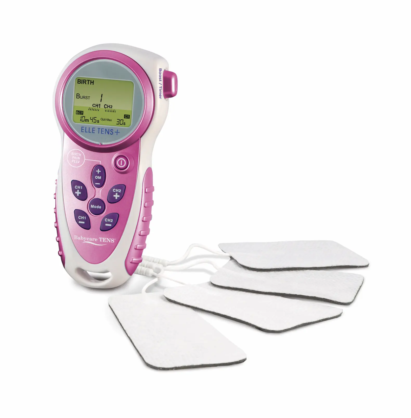 Elle TENS Plus je "3 enote v 1" in časovnik popadke! Najbolj tehnološko dovršena porodna TENS naprava – idealen za vse vaše porodne in poporodne potrebe. Elle TENS Plus je izdelan z enako vrhunsko tehnologijo kot prvotni nagrajeni Elle TENS in je preprosto najboljši pri lajšanju bolečin brez zdravil pri porodu, splošnih bolečinah in toniranju medeničnega dna.